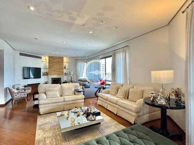 Descrição do imóvel: PENTHOUSE 11º andar com vista panorâmica, 4 suítes sendo uma master, com closed Sr e Sra,, banheiro Sr. e Sra., com banheira jacuzzi e lareira e local para maquiagens. Todas as suítes com banheira jacuzzi e com varanda, com ar condicionado, persianas automáticas. Hall social exclusivo, lavabo, escritório, sala de TV, living 3 ambientes com lareira e ar condicionado central, adega fechada, sala de jantar com 12 lugares, sala de almoço para 6 lugares, terraço com 55 m2 com piscina aquecida, sauna e WC. Espaço gourmet com churrasqueira, e mesa para 10 lugares. Cozinha com despensa e possibilidade de colocar ilha, área de serviço com 2 tanques, dependências e banheiro de empregada, 5 vagas de garagem e depósito no subsolo.